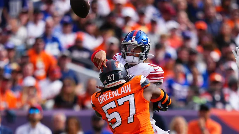 Según la liga, tras la histórica remontada de los Broncos contra los Giants, Greenlaw persiguió al árbitro Brad Allen y lo amenazó verbalmente mientras intentaba salir del campo. Tuvo seis tacleadas en 21 jugadas el domingo.