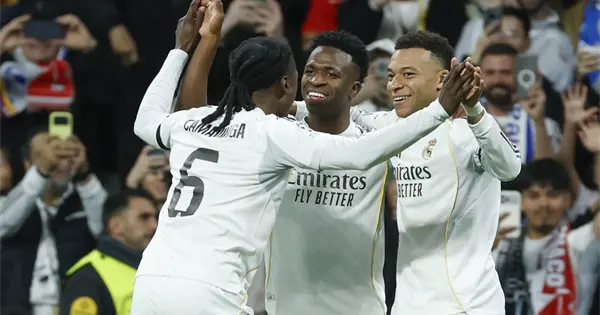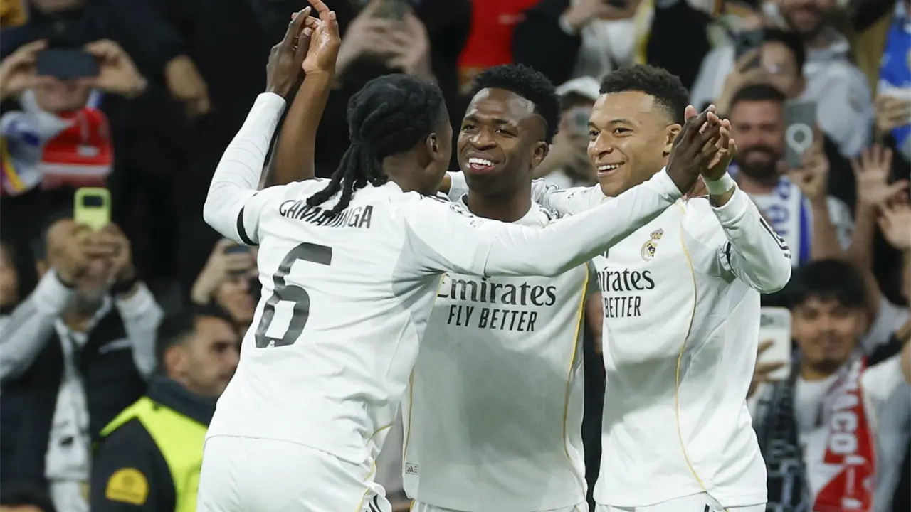 El Real Madrid se impuso con autoridad este martes al Mónaco (6-1), gracias al doblete del francés Kylian Mbappé en los minutos 5 y 26, al gol del argentino Franco Mastantuono en el 55, al gol en propia puerta del alemán Thilo Kehrer en el 55, el del brasileño Vinícius en el 63 y el del inglés Jude Bellingham en el 80.