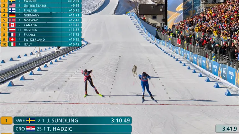 Perro suelto irrumpe en carrera de esquí fondo en Milán Cortina
