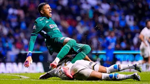 México.- El arquero colombiano Kevin Mier sufrió una fractura tras la fuerte entrada del jugador de Pumas, Adalberto Carrasquilla, durante el duelo de la Jornada 17 entre ambos equipos, que derivó en tarjeta amarilla para el panameño y en la salida del terreno de juego por parte del guardameta.