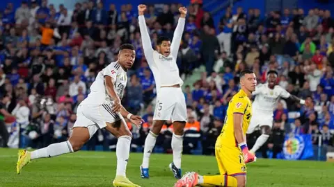 A pesar de jugar con nueve hombres, Getafe casi igualó en el tiempo de descuento, con el portero del Madrid Thibaut Courtois saliendo de la portería para hacer una difícil parada a corta distancia a un disparo de Abu Kamara dentro del área.