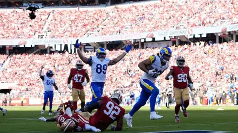 Kyren Williams añadió dos carreras de anotación para los Rams (7-2), quienes vengaron una derrota en casa en tiempo extra ante los 49ers (6-4) en la semana cinco para mantenerse empatados en el primer lugar con Seattle en la División Oeste de la Conferencia Nacional.