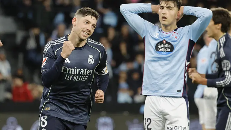 Un gol del uruguayo Fede Valverde en el minuto 94, después de un tiro desde la frontal que tocó en Marcos Alonso para desviar la trayectoria del balón, mantiene vivo al Real Madrid en la carrera por el título de Liga, después de sobrevivir a otro mal partido en Balaídos, donde el celtismo soñó con el triunfo con el disparo de Aspas que se estrelló en el poste en el minuto 83.