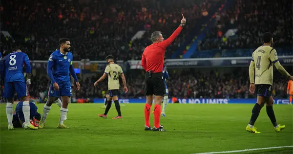El defensor fueexpulsado justo antes del descanso en la derrota 3-0 ante Chelsea en la Liga de Campeones la semana pasada.