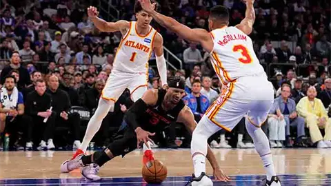 NUEVA YORK.- CJ McCollum anotó 32 puntos y los Hawks de Atlanta remontaron para sorprender 107-106 a los Knicks de Nueva York la noche del lunes, igualando su serie de primera ronda de los playoffs a un triunfo por bando.
