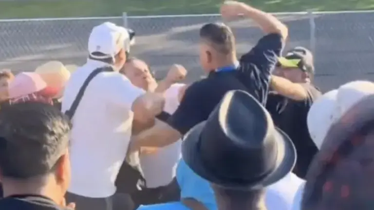 "¡Fuera, fuera!", gritaban los espectadores al ver el enfrentamiento. Tras separarlos, el acompañante del hombre vestido de negro insultó al otro, que permanecía tirado y con el rostro ensangrentado, mientras los policías intentaban calmarlo.