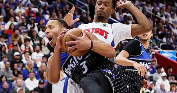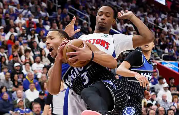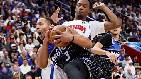 DETROIT.- Paolo Banchero anotó 23 puntos, capturó nueve rebotes y repartió cuatro asistencias para liderar al Magic de Orlando, octavo preclasificado, a una victoria de 112-101 sobre los Pistons de Detroit, primeros preclasificados, el domingo por la noche en el Juego 1 de su serie de primera ronda, lo que extendió la racha más larga de derrotas en casa en playoffs en la historia de la NBA.