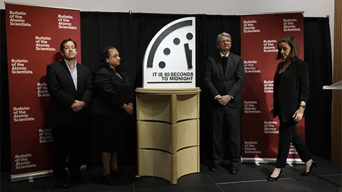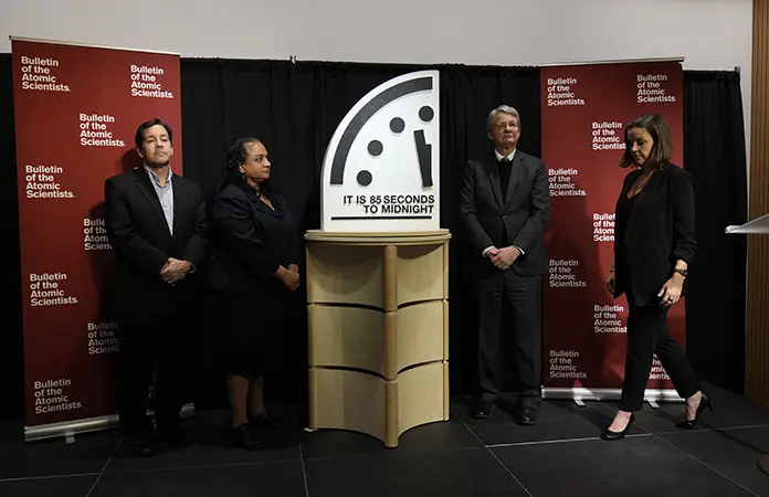 El Boletín de los Científicos Atómicos citó riesgos de guerra nuclear, cambio climático, posible mal uso de la biotecnología y el creciente uso de inteligencia artificial sin controles adecuados al hacer el anuncio anual, que evalúa cuán cerca está la humanidad de su fin.