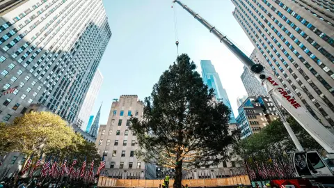 Árbol de Navidad del Centro Rockefeller izado en Manhattan