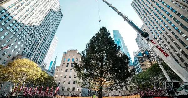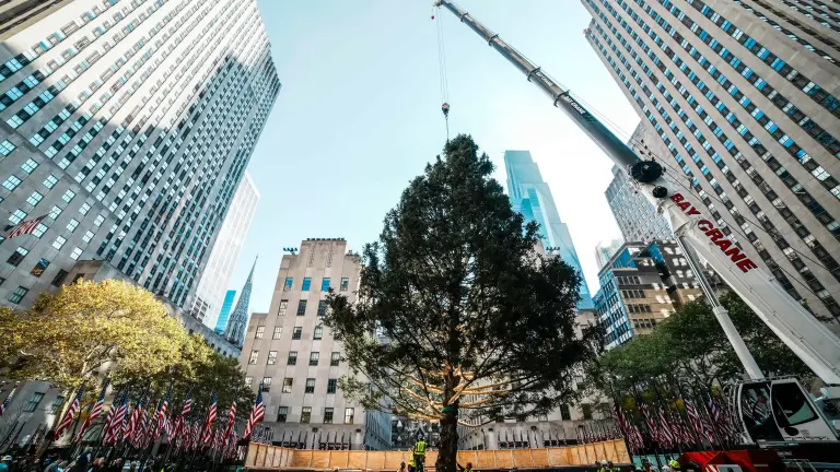 Un majestuoso abeto noruego de 23 metros llega al Centro Rockefeller, simbolizando la magia de la Navidad en Nueva York.