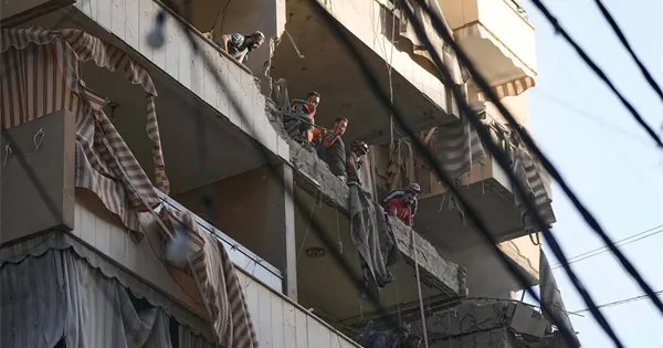 Se podía ver humo en el concurrido barrio de Haret Hreik, donde Israel no emitió un aviso de evacuación antes del ataque. El cuarto piso de un edificio de apartamentos sufrió daños. Se escucharon disparos para dispersar a las multitudes cuando llegaba el personal de emergencia.