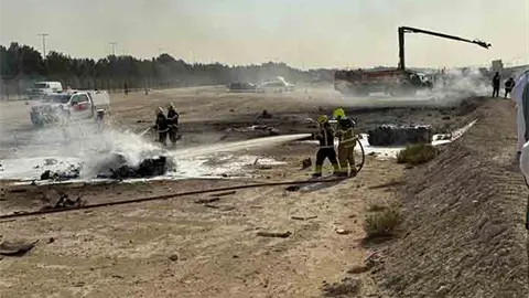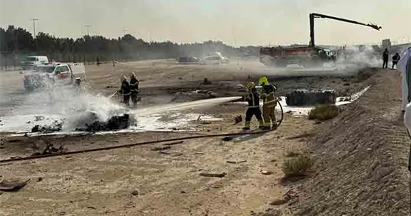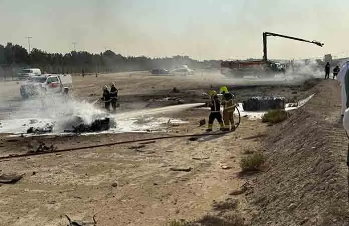 El avión indio HAL Tejas se estrelló en el enorme Aeropuerto Internacional de Dubái-Al Maktoum, en el complejo Dubai World Central, provocando una gran bola de fuego y una densa columna de humo negro.