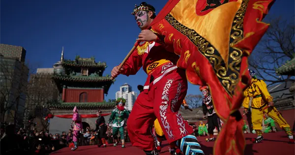Miles de personas en Beijing abarrotaron el antiguo templo de la Tierra para comprar bocadillos, juguetes y baratijas en los puestos. Sun Jing, quien llevó a sus padres a la capital para la celebración, dijo que el ambiente era tan animado como en su infancia.
