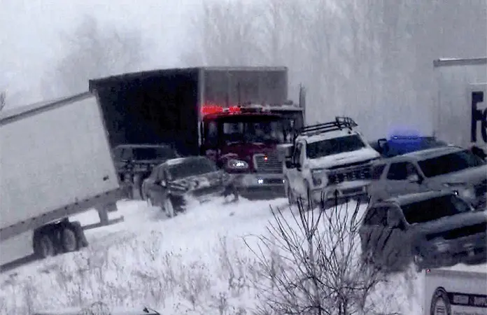 El accidente es el impacto más reciente de una enorme tormenta invernal que se desplaza por el país. El Servicio Meteorológico Nacional emitió advertencias sobre temperaturas extremadamente bajas o posibles tormentas invernales en varios estados, desde el norte de Minnesota y extendiéndose hacia el sur y el este hasta Wisconsin, Indiana, Ohio, Pensilvania y Nueva York.