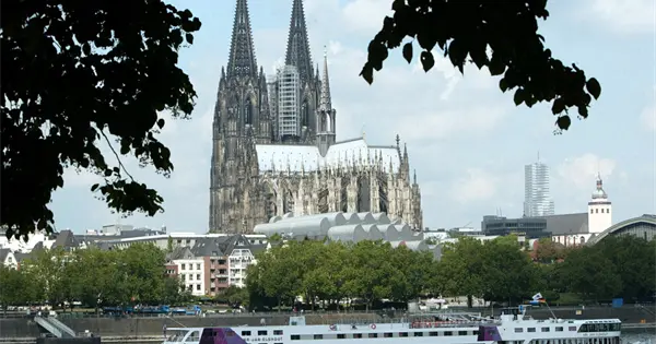 La catedral, con sus dos agujas, se alza sobre la principal estación ferroviaria de Colonia, junto al río Rin, y domina el perfil urbano de la ciudad. La construcción de la catedral gótica comenzó en 1248 y se completó en 1880. Fue incorporada a la lista de sitios del Patrimonio Mundial de la UNESCO en 1996.