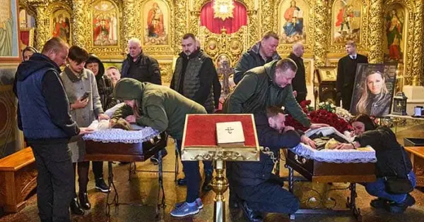 “Defender la verdad es una de las formas más elevadas de amor al prójimo. En su esfuerzo por mostrar la verdad al mundo, estos periodistas dieron sus vidas”, dijo el sacerdote Viktor Zhyvchyk durante el servicio.