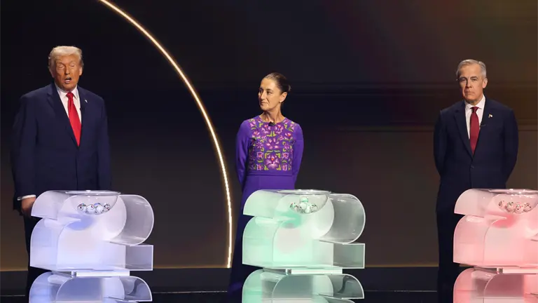 Flanqueada por el presidente estadounidense, Donald Trump, y el primer ministro canadiense, Mark Carney, Sheinbaum resaltó el orgullo de México de ser la única nación en recibir por tercera vez el Mundial, cuya edición de 2026 coorganiza junto a sus vecinos.
