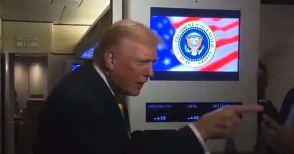 Catherine Lucey, corresponsal en la Casa Blanca de la agencia Bloomberg, preguntó a Trump en el avión presidencial sobre la desclasificación de los documentos del caso del pederasta Jeffrey Epstein cuando el republicano le ordenó que se callara.
