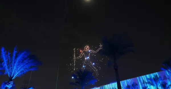 Mientras una orquesta tocaba fanfarrias, filas de actores vestidos con atuendos del antiguo Egipto se alineaban alrededor del museo, las pirámides y la Esfinge. Cientos de drones crearon un espectáculo de luces en el cielo, representando a dioses egipcios como Isis y Osiris y las pirámides.