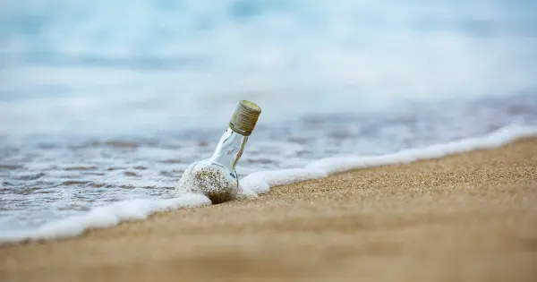 Una mujer, Debra Brown, encontró la botella después de 109 años mientras recogía basura en la playa. Se cree que la botella salió a la superficie tras una fuerte tormenta invernal.
