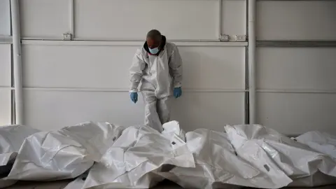 En fotografías se podían ver los restos, metidos en bolsas blancas para cadáveres, dispuestos en filas dentro del recinto del hospital. Las autoridades sanitarias han tenido dificultades para identificar los cadáveres sin acceso a kits de ADN.