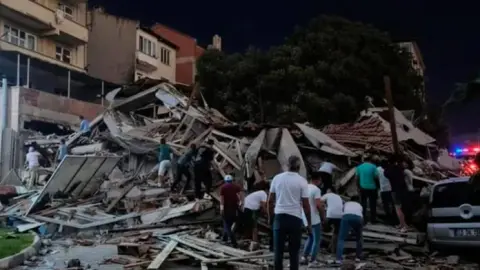 Al menos tres edificios desocupados y una tienda de dos pisos se vinieron abajo en Sindirgi, informó el ministro del Interior, Ali Yerlikaya. Los inmuebles ya tenían daños causados por un terremoto anterior.