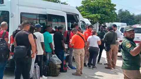 En San Pedro Tapanatepec solamente se quedaron unas 15 personas, quienes tramitarán su estancia en México a través de una oficina jurídica que se encuentra en Salina Cruz, mientras tanto, esperarán en el albergue del DIF nacional, destinado a menores y adolescentes en tránsito.