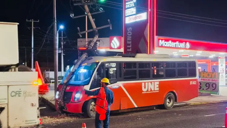 De acuerdo con el Instituto de Movilidad y Transporte del Estado de Sonora (Imtes), el operador sufrió una crisis convulsiva que lo hizo perder el control del vehículo, el cual terminó impactándose contra un poste de electricidad que quedó recargado sobre la unidad.