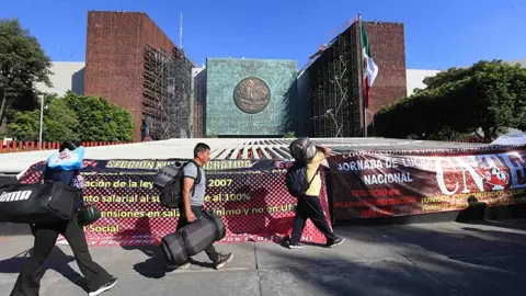 “Nuestro plantón no es un capricho, es la respuesta a una negociación que no avanza y a una lista de demandas que siguen abiertas: abrogación de la Ley del ISSSTE 2017, la desaparición del USICAMM y un presupuesto educativo digno. Si el gobierno tiene interés real en escuchar, aquí estamos, a la vista de todos, esperando soluciones de fondo y no discursos”, dijo Pedro Hernández, secretario general de la Sección 9.