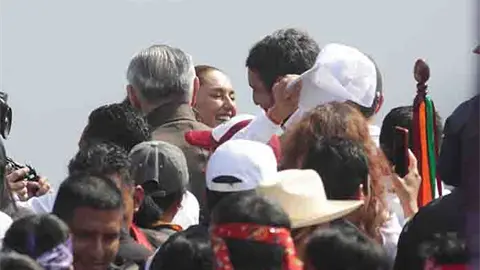 Sin embargo, al final del discurso, el castigo presidencial se levantó cuando Claudia Sheinbaum los saludó de mano y con abrazos.