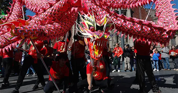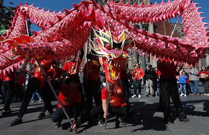 La mañana del sábado, familias y visitantes acudieron al Centro Histórico para presenciar el desfile de dragones, leones y caballos, previo a la llegada del Año Nuevo chino, el 17 de febrero.