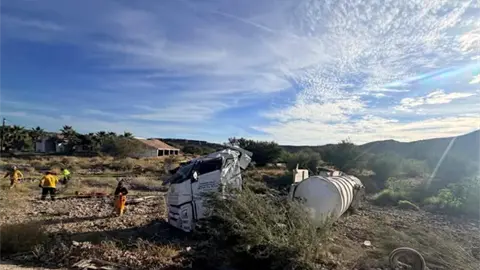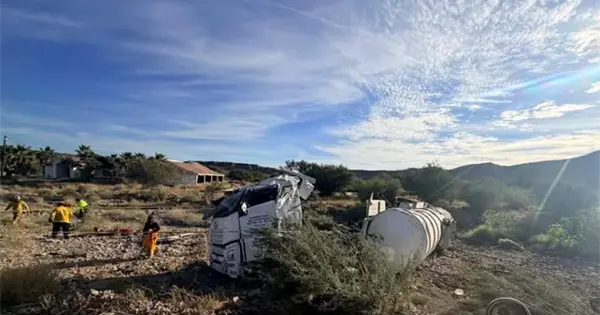 La carretera transpeninsular de Baja California Sur se ve afectada por la volcadura de una pipa con hidrocarburos