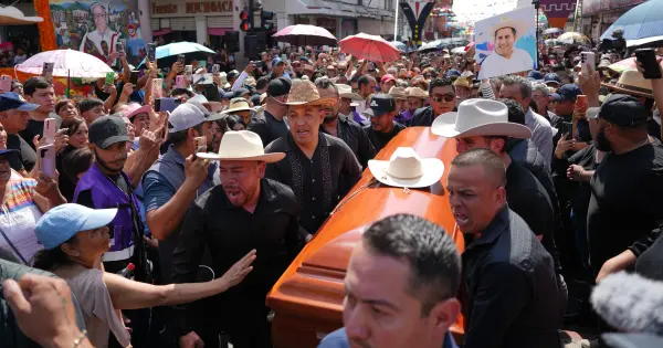 URUAPAN, México (AP) — Cientos de personas exigían justicia el domingo en las calles de Uruapan mientras despedían al alcalde de esa ciudad del occidente de México, el cual fue baleado de muerte a pesar de contar con la protección de policías locales y 14 elementos de la Guardia Nacional, lo que pone de relieve la fragilidad de las fuerzas de seguridad frente a los poderosos cárteles mexicanos.