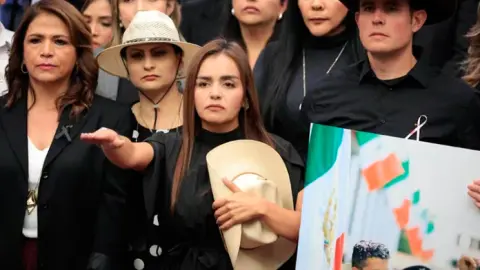 La nueva alcaldesa hizo un recorrido, a bordo de una camioneta blindada, por la Plaza Principal, donde el sábado pasado fue asesinado su esposo, Carlos Manzo, y posteriormente se detuvo en la Iglesia de San Francisco. Sin embargo, no descendió del vehículo.
