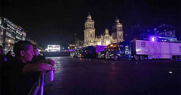 En calles como 20 de Noviembre, 16 de Septiembre y Pino Suárez había vallas metálicas y un par de oficiales en cada acceso. Mientras que en la plancha del Zócalo continuaban trabajos de instalación del escenario frente a la Catedral Metropolitana.