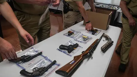 "El día de ayer sacó Estados Unidos, por cierto, una incautación de armas histórica en su territorio. (...) Hoy en el gabinete de Seguridad se mostraron 500, son 500 armas que fueron incautadas en Estados Unidos, que es parte de lo que hemos estado planteando en las mesas, que no solamente se hable de la droga que pasa de México a Estados Unidos, sino que también se pare el tráfico de armas de Estados Unidos a México", dijo la Mandataria federal.
