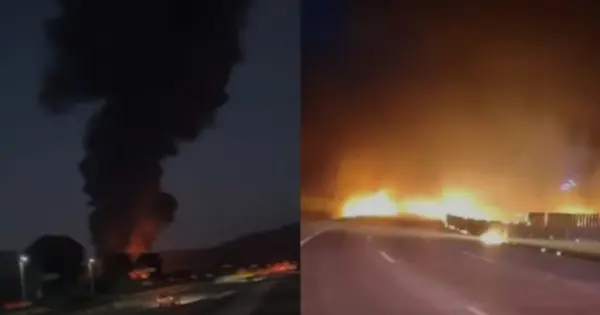 Incendio de pipa en autopista México-Puebla provoca cierre de vialidad