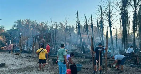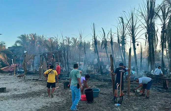 El fuego se propagó rápidamente hacia otras palapas, cabañas y pequeños negocios de la zona, detalló la dependencia lo que dejó pérdidas materiales totales en aproximadamente entre 60 y 70 establecimientos.