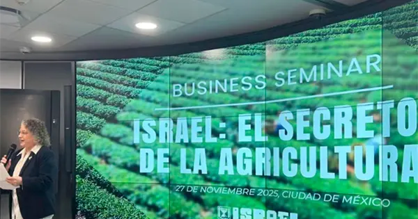 En el seminario "Israel: El secreto de la Agricultura Sostenible", participaron líderes en agricultura y sustentabilidad, así como empresas israelíes con presencia en México especializadas en soluciones hídricas y de agricultura como manejo adecuado del agua, riego por goteo, válvulas hidráulicas inteligentes, y eficiencia agrícola mediante el uso de nuevas tecnologías como Inteligencia Artificial, drones, sensores y monitoreo en tiempo real.