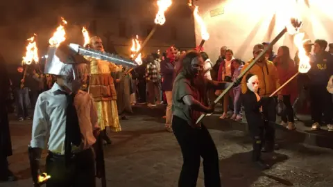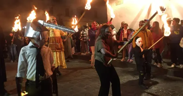 Las calles de Pátzcuaro, el pueblo mágico michoacano en cuyo lago se dice que hay aparecidos, estaban alumbradas con fogatas que otros monstruos cargaban a paso lento.