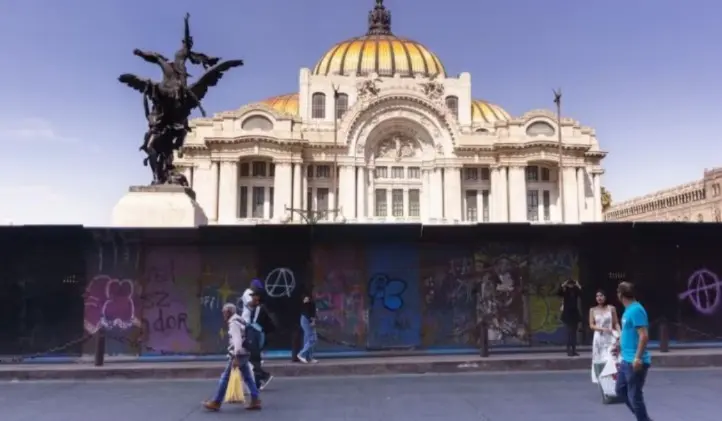 La presencia de vallas en el Palacio de Bellas Artes genera críticas y descontento entre los turistas que buscan disfrutar del recinto cultural.