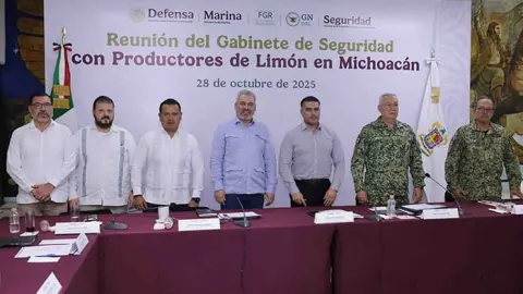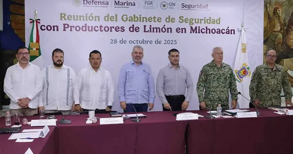 APATZINGÁN, Mich.- El titular de la Secretaría de Seguridad y Protección Ciudadana (SSPC), Omar García Harfuch, el gobernador de Michoacán, Alfredo Ramírez Bedolla, acordaron con representantes del sector limonero fortalecer la seguridad del gremio, así como brindar las condiciones que garanticen las actividades productivas de los trabajadores del campo.