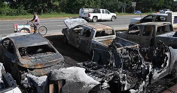 Villahermosa, Tab.- Un total de 13 autos quemados, tres ejecutados y colocación de ponchallantas en diversas avenidas de la capital del estado, fue el saldo que dejaron los hechos violentos que se presentaron en Tabasco la noche del martes y madrugada del miércoles, en respuesta a la detención de cuatro integrantes de una célula criminal