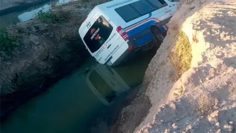 Una camioneta de transporte de personal fue abandonada por su conductor luego de caer a las aguas negras del río Santiago, a la altura del camino a Valle de la Palma, por lo que finalmente fue asegurada y enviada a una pensión hasta que sea reclamada.