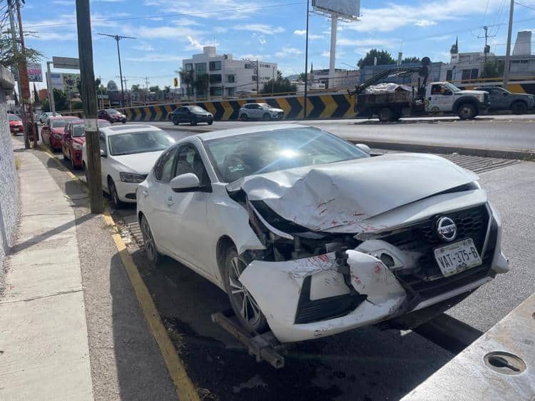 El accidente se suscitó esta mañana cuando el conductor de un Nissan Sentra conducía a exceso de velocidad sobre carriles centrales de Salvador Nava y al descender del puente Niño Artillero, impactó por alcance a un vehículo Chevrolet Spark, proyectándolo hacia un carril lateral.