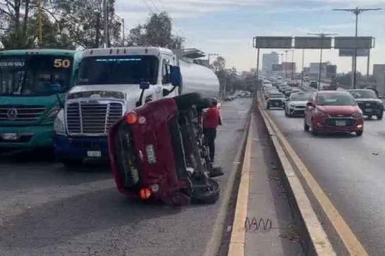 Choque y volcadura en Salvador Nava deja únicamente daños