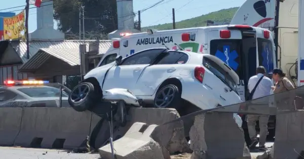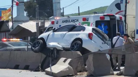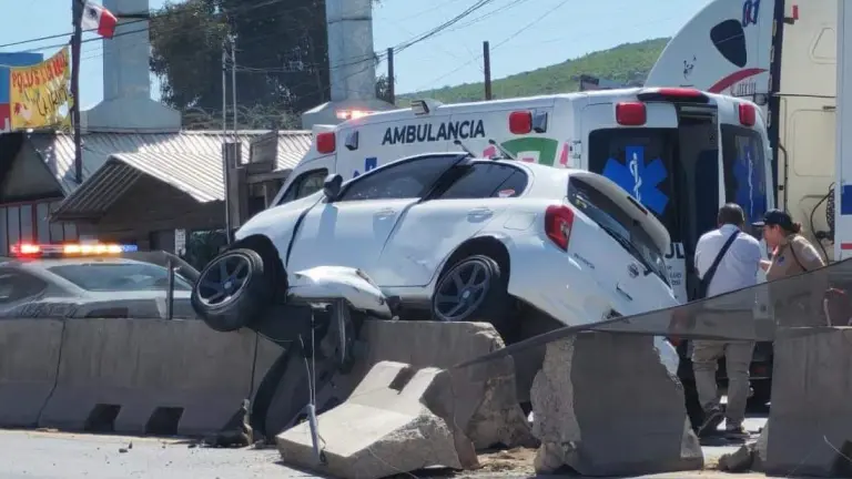 El conductor de un automóvil Nissan tipo March, circulaba sobre el Circuito Potosí con dirección al Oriente y perdió el control hacia su izquierda chocando con dos barras de concreto que dividen ambos carriles; metros más adelante quedó encima de las barras.