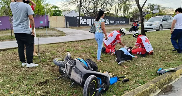 Sin embargo, de la colonia Bellavista salió una camioneta Ford Escape gris, conducida por una mujer, quien chocó contra la motociclista.
