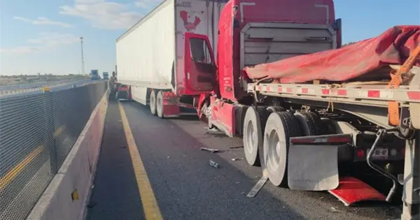 La colisión se dio entre dos unidades tipo tráiler, una con caja seca y otra con plataforma, donde esta última impactó con la defensa trasera de la otra, según reportes de la Guardia Nacional.