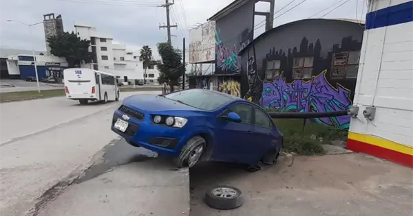 El vehículo se salió de la vialidad frente a una agencia cervecera